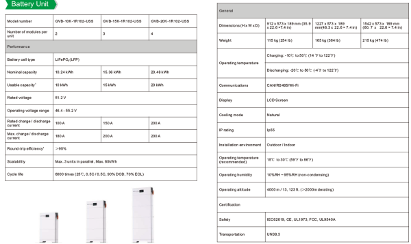 A solar battery unit stores energy generated from solar panels for use during power outages or when sunlight is unavailable.