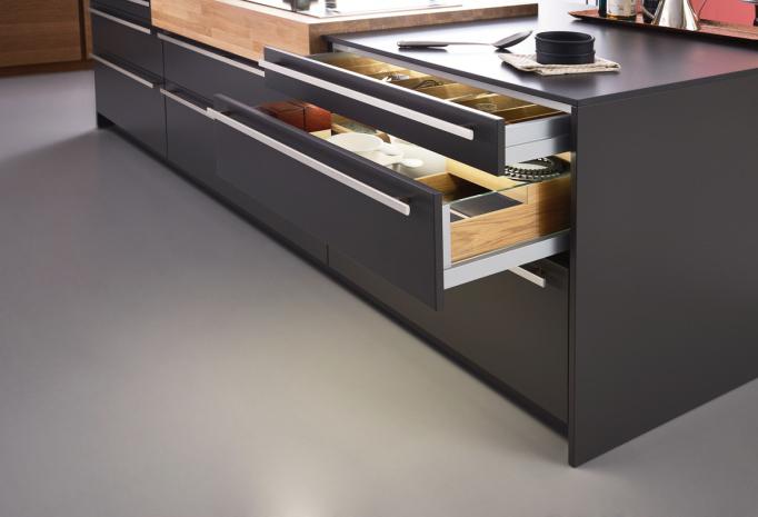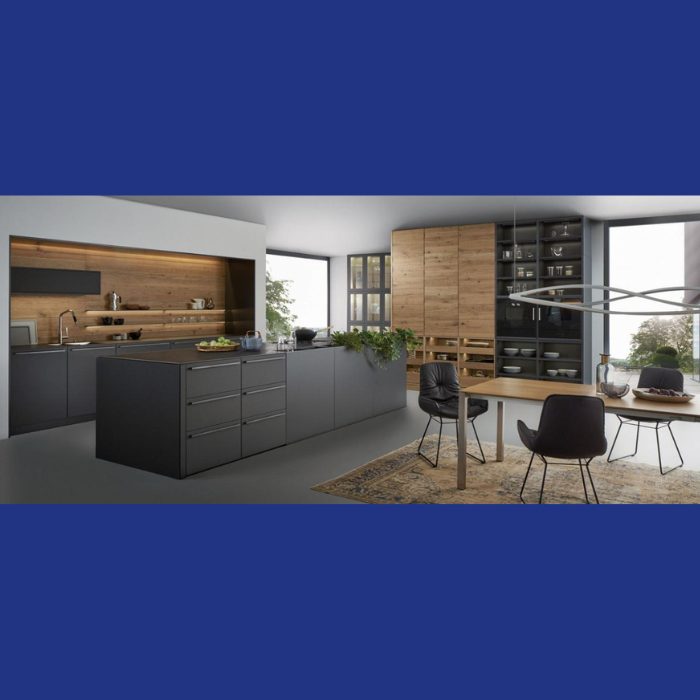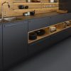 Sleek black lacquer finish kitchen cabinet with a high-gloss surface, offering a modern look, smooth touch, and easy maintenance.