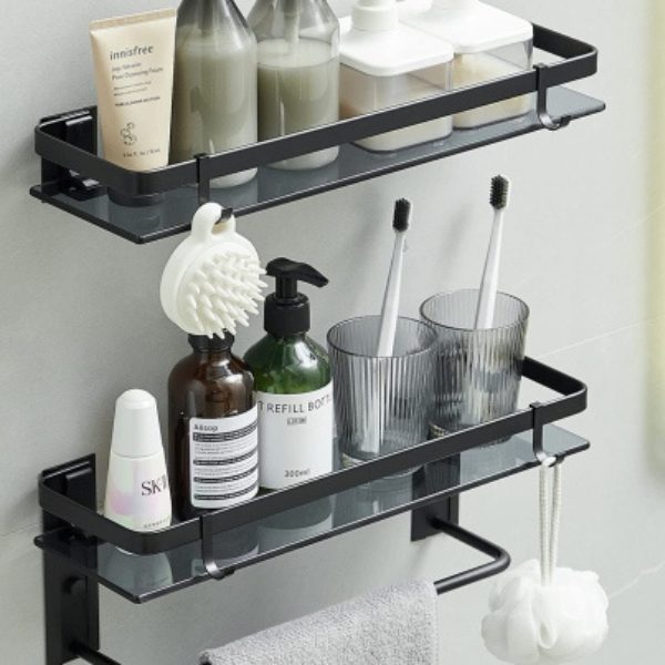 Towel rack and bathroom shelf designed for organized storage and easy access, combining durable construction with a modern design for efficient use of space in residential and commercial bathrooms.