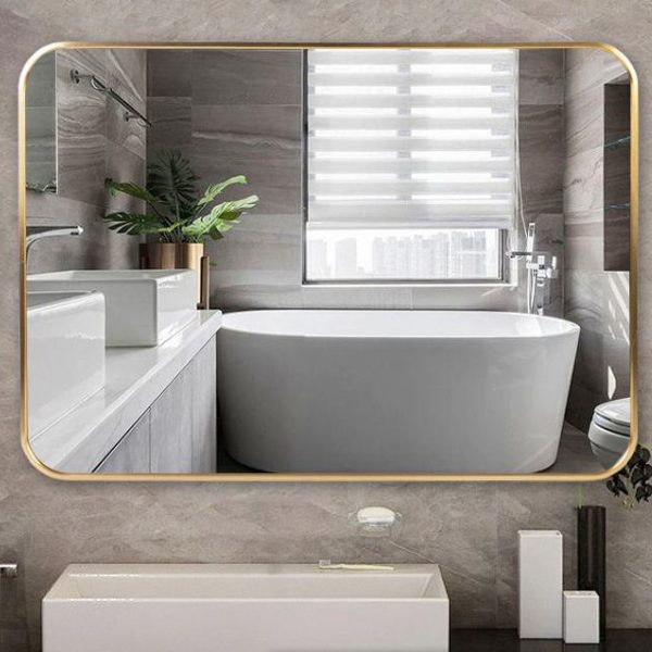 Bathroom mirror designed to enhance space and lighting, featuring a clear reflection, durable construction, and a modern design suitable for residential and commercial interiors.
