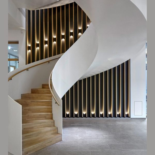 Curved staircase crafted to create a smooth, elegant architectural flow, combining structural strength with refined design for residential and commercial interiors.