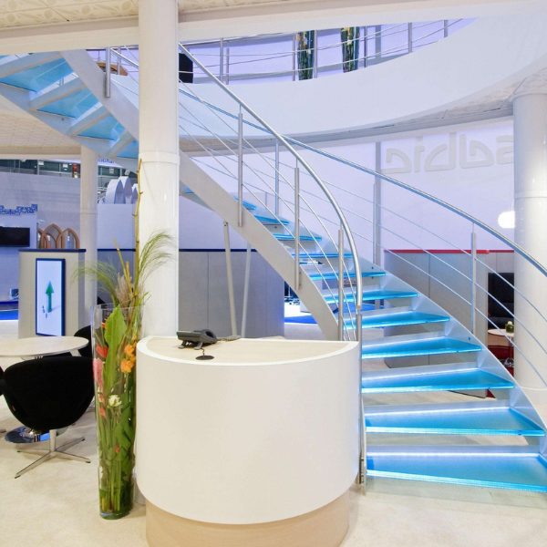 Curved staircase crafted to create a smooth, elegant architectural flow, combining structural strength with refined design for residential and commercial interiors.
