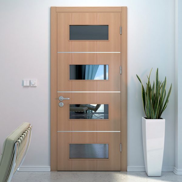 The composite glass door is not easy to deform or crack, it is clear texture on the surface, the door has the characteristics of heat preservation, impact resistance, and flame retardant, and the sound insulation effect is basically the same as that of the solid wood composite door.