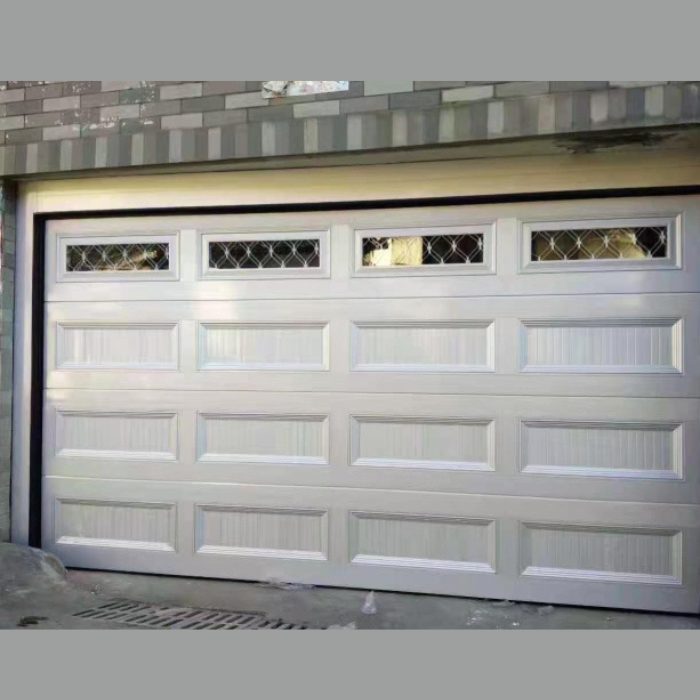Aluminum panel garage door designed for modern architecture, combining lightweight strength with corrosion resistance and smooth operation. Constructed with durable aluminum frames and panel options such as solid, glazed, or insulated inserts, it offers a sleek appearance, low maintenance, and long-term performance for residential and commercial applications.
