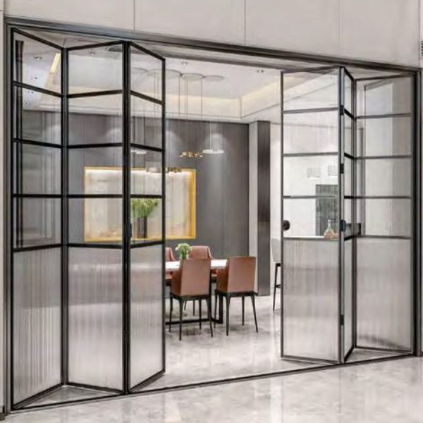 – Material: Aluminum alloy material – Profile specification: 16*45*2.0mm /16*40*2.0mm – Glass: 8mm single tempered glass / Insulated or laminated tempered glass within 25mm thickness – Opening method: Folding door. – Pulleys, locks, and handles.
